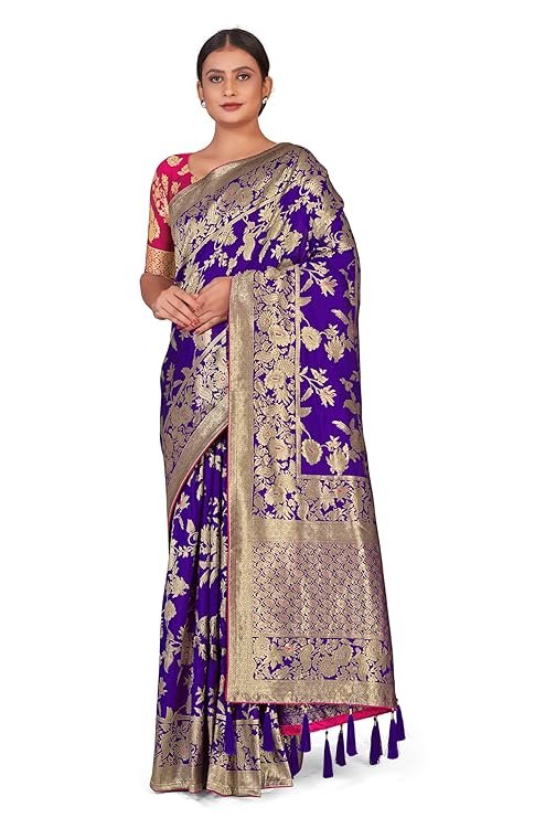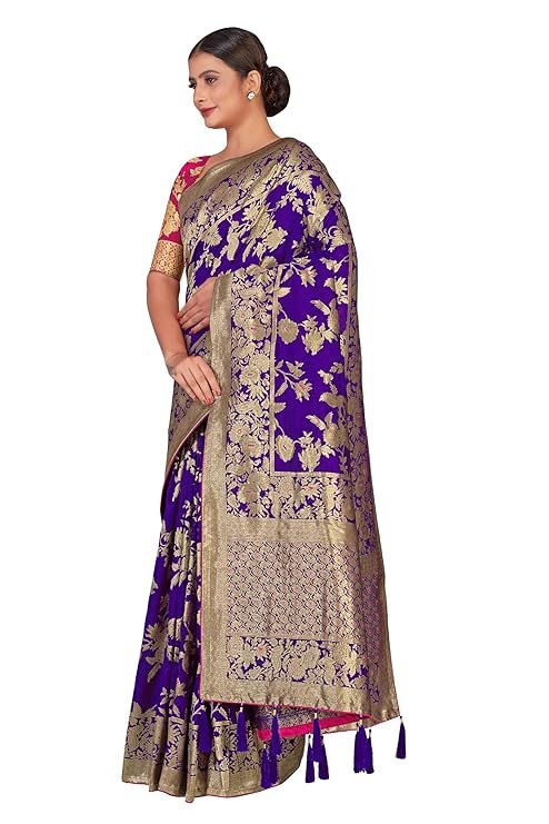 Embrace timeless elegance with the Monjolika Fashion Women’s Banarasi Silk Blend Saree. Crafted with luxurious silk blend fabric, this saree features rich woven zari work that radiates traditional grandeur. The beautiful tassel detailing on the pallu enhances its festive charm, while the jacquard woven blouse piece allows for a perfectly tailored fit.